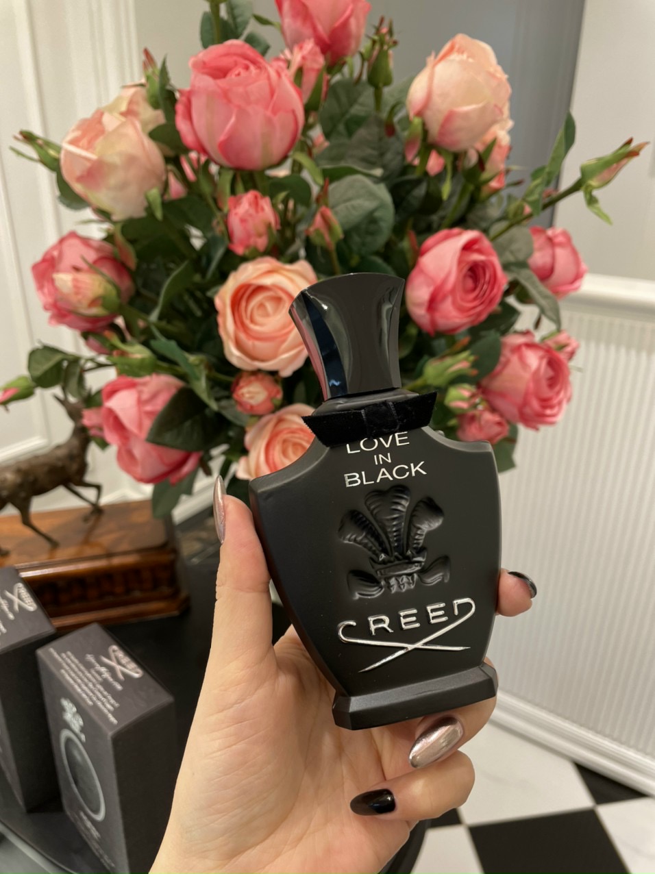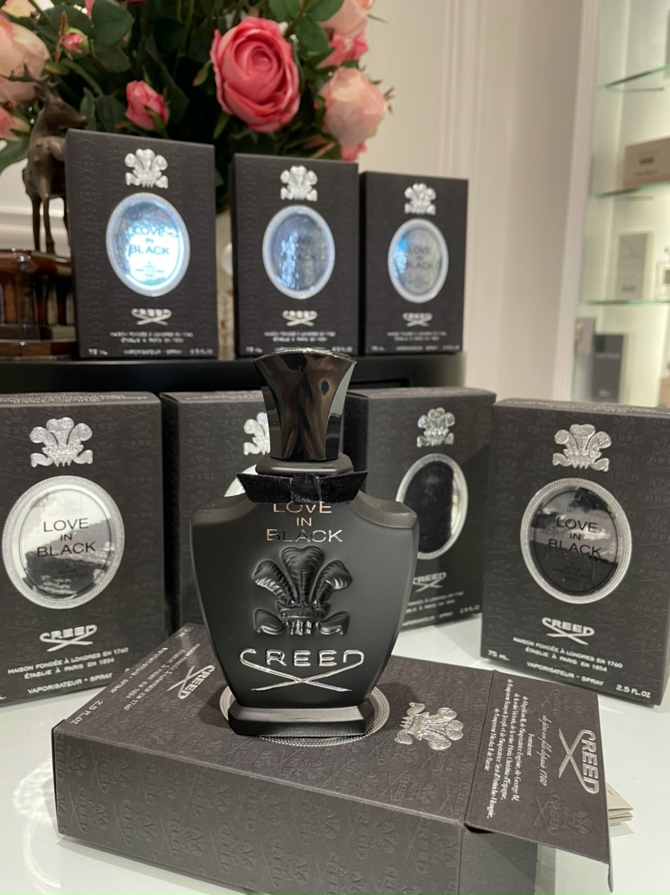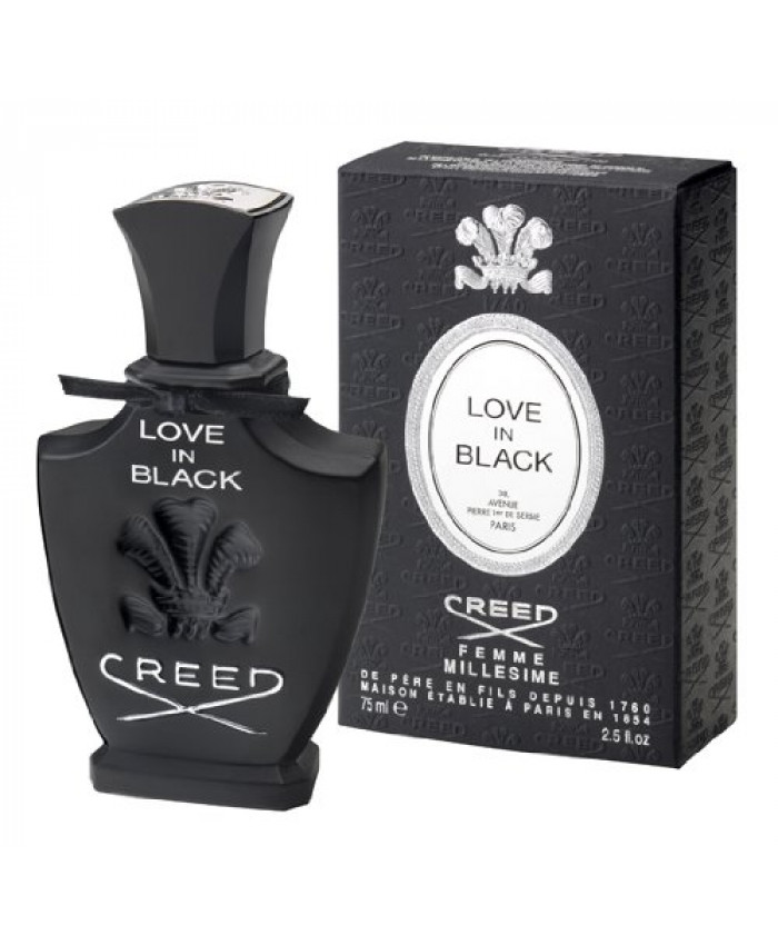 Love in Black là một chai nước hoa nữ, đã được giới thiệu vào năm 2008. Hương thơm của nước hoa được lấy cảm hứng từ cưu đệ nhất phu nhân, Jacqueline Kennedy, và thành phần hương thơm được tổ hợp từ những nguyên liệu thu hoạch từ những nơi mà bà đã từng đến và yêu quý. Love in Black được xếp vào dòng hương hoa cỏ và do chính Erwin Creed đời thứ 7 và Olivier Creed đời thứ 6 sáng tạo nên.