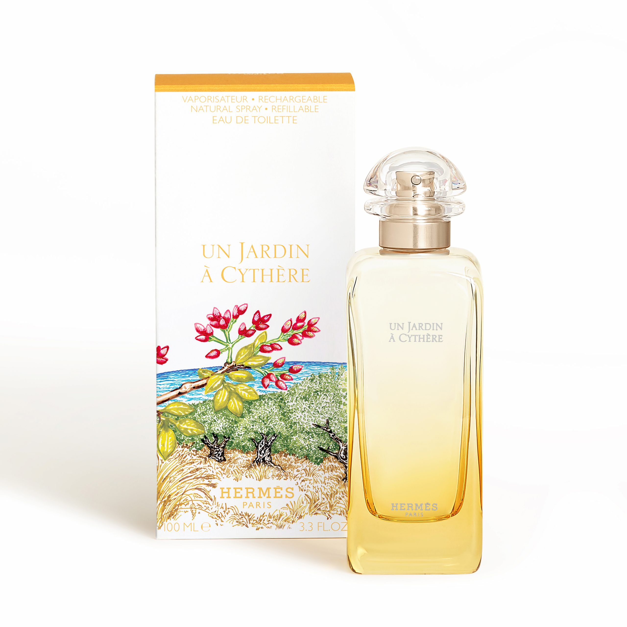 Một khu vườn đáng kinh ngạc, không xanh tươi cũng không hoa lá, mà là vàng hoe của nắng. Christine Nagel đã tạo ra mùi hương này từ kỉ niệm sau chuyến du lịch tại Cythere, Hy Lạp. Một hương thơm của cam quýt, kết hợp của cỏ với gỗ ô liu và sự dịu dàng của quả hạt dẻ cười.