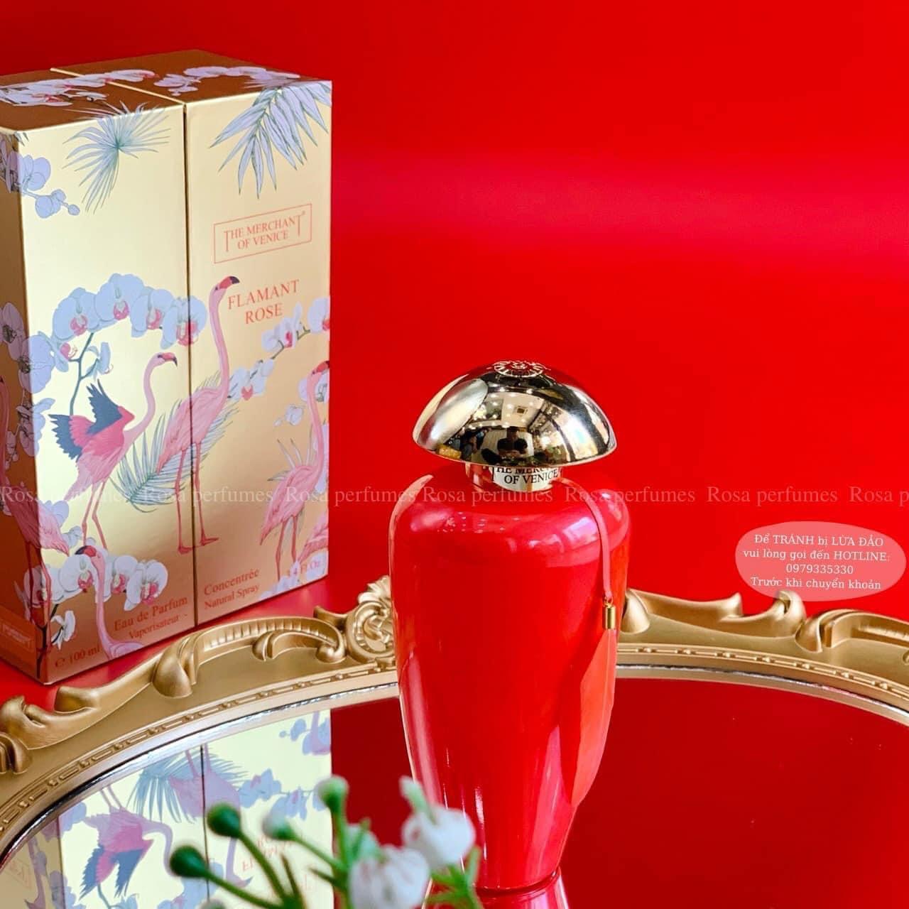 Flamant Rose của The Merchant of Venice là một hương thơm Amber Floral dành cho phụ nữ. Đây là một hương thơm mới. Flamant Rose được ra mắt vào năm 2021. Người đứng sau loại nước hoa này là Cyrill Rolland. Hương đầu là Quả cam Mandarin, Cỏ roi ngựa chanh và Cỏ hôi; hương giữa là Quả mơ, Hoa phong lữ và Hoa cam; hương cuối là Đậu Tonka, Xạ hương và Cây hoắc hương.