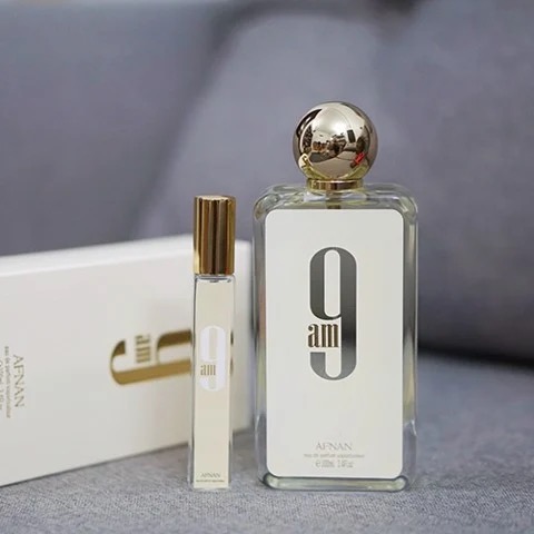 - Afnan 9AM bắt đầu mùi hương bằng vị ngọt ngào của trái quýt, bạch đậu khấu, kèm một chút cay the của tiêu hồng và quế. Cho chúng ta cảm giác thật tươi mới, sảng khoái và tràn đầy năng lượng.Hương thơm dần chuyển sang mùi thơm nồng nàn của hoa cam, oải hương, hoa hồng, kèm chút hương táo xanh. Bạn sẽ có cảm giác như lạc vào một khu vườn đầy hoa trái và ánh nắng nhẹ của buổi sáng.Nốt hương cuối cho ta cảm giác sảng khoái như vừa kết thúc một ngày làm việc hiệu quả. Tổng thể đây là một mùi hương trung tính, sạch sẽ, tươi mới, sảng khoái và tràn đầy năng lượng