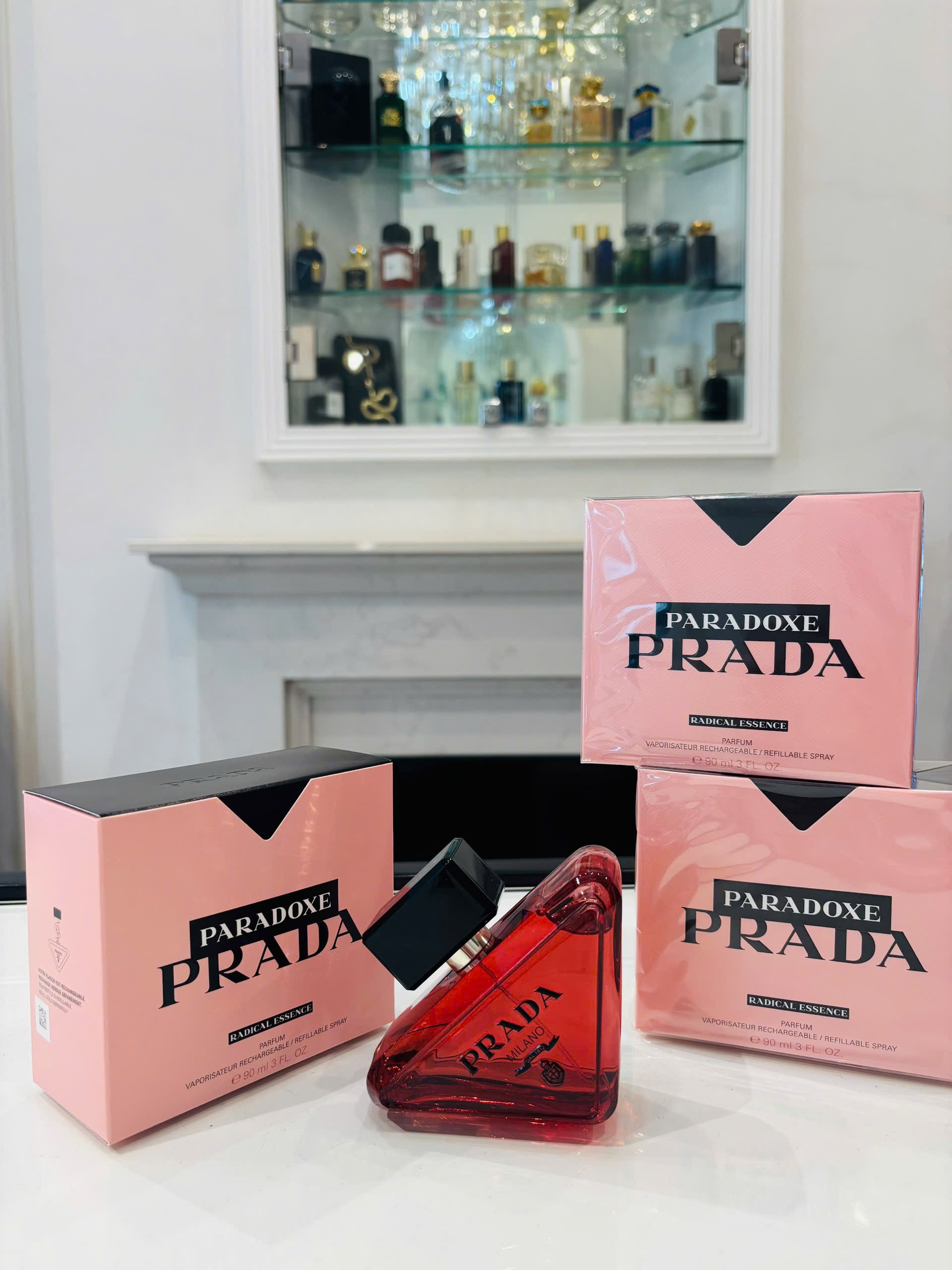 Tiếp nối tinh thần nữ tính đương đại của dòng Paradoxe, Prada Paradoxe Radical Essence Parfum được tạo ra dành cho hình ảnh người phụ nữ tự tin, chủ động và không ngại thể hiện bản thân. Mùi hương mang phong cách hoa cỏ gỗ xạ hương, được xây dựng theo hướng đậm nét và trưởng thành hơn, nhưng vẫn giữ được sự tinh tế đặc trưng của Prada. Phiên bản này ra mắt năm 2025, do Antoine Maisondieu, Nadège Le Garlantezec và Shyamala Maisondieu sáng tạo, với mục tiêu mang đến một Paradoxe có chiều sâu hơn về mùi hương và độ lưu hương nhờ nồng độ Parfum.
