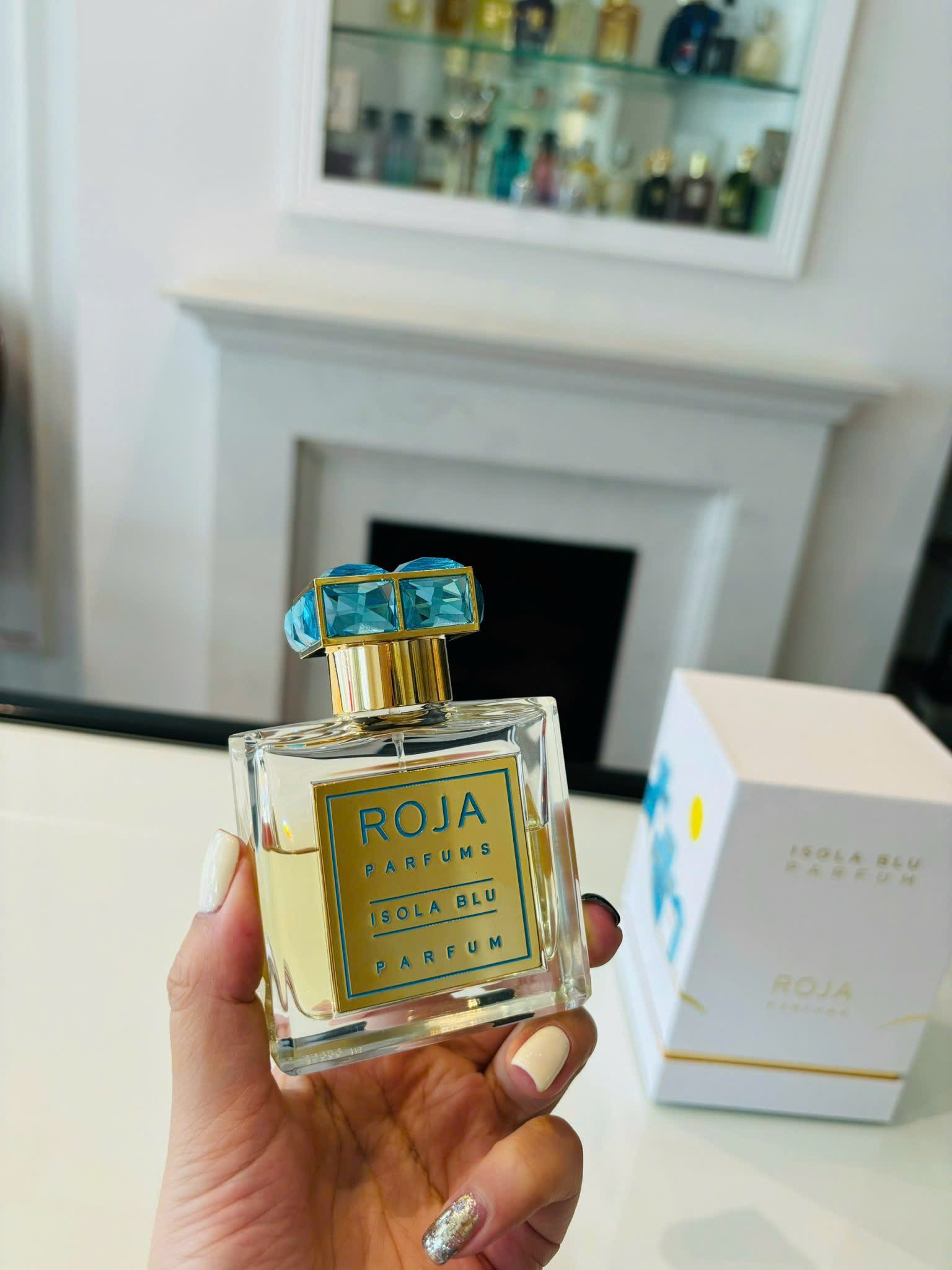 Điểm nhấn đặc biệt chính là nút chai được trang trí bằng đá xanh lấp lánh, như một món trang sức độc đáo, làm tôn lên vẻ xa hoa của sản phẩm. Roja Parfums Isola Blu Parfum không chỉ là nước hoa, đó còn là biểu tượng của sự tinh tế và đẳng cấp.