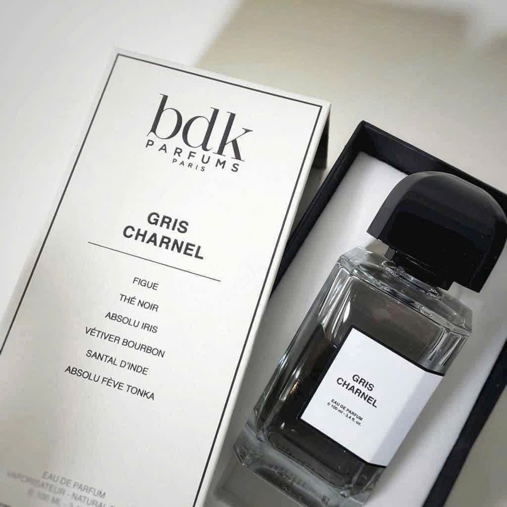 BDK Parfums Gris Charnel EDP mang hương gỗ, cay ấm và một chút xạ sẽ là hương đầu tiên, mùi ngọt đó sẽ thấp dần để dẫn tiếp tới vị trà đen và quả sung. Sau vị ngọt chát thì mùi biến chuyển qua mùi hoa diên vĩ vô cùng mềm mại, diên vĩ ở đây không hề ngọt mà kiểu tươi mới như hoa cỏ. Điều khiến bạn chắc chắn phải ấn tượng đó là sự pha trộn của chút hương kem béo hoà trộn cùng gỗ đàn hương, vừa cay nồng vừa ngọt bùi. Kết cuối là Đậu Tonka để lại dư vị ấm áp sau chuỗi mùi hương quá phong phú.