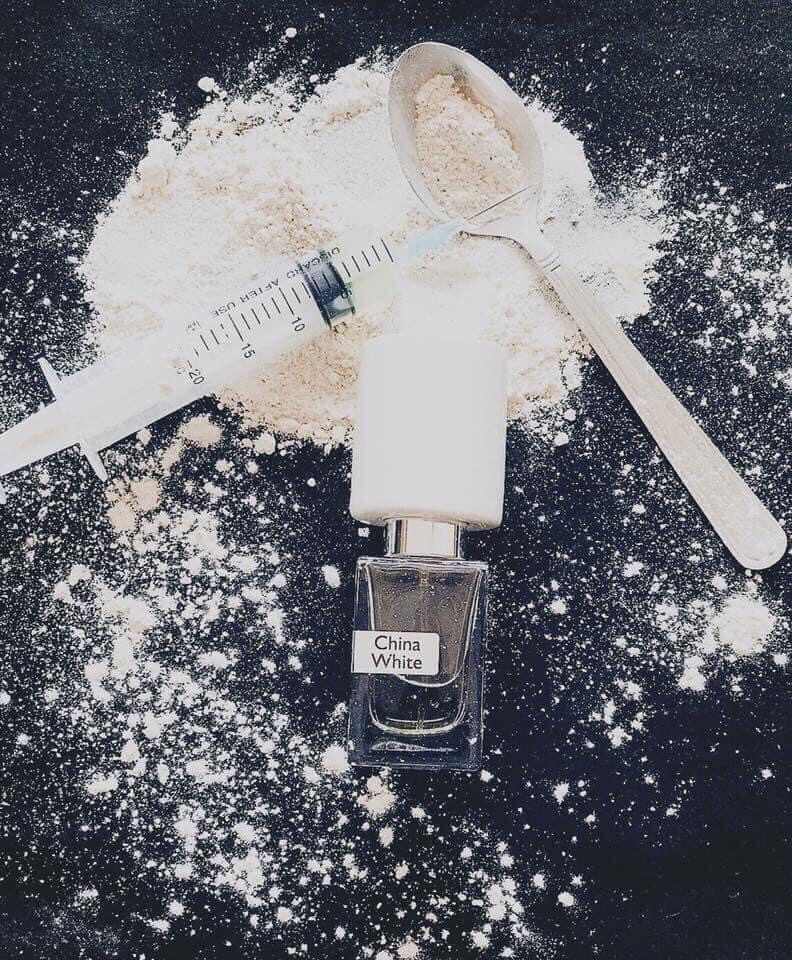 𝐂𝐇𝐈𝐍𝐀 𝐖𝐇𝐈𝐓𝐄 không phải để tôn vinh thuốc phiện hoặc sử dụng ma túy, tuy nhiên mùi hương này là vô cùng lâu dài, với sự bền bỉ đáng kinh ngạc. Thông điệp của người sáng chế ra hương thơm này rất rõ ràng: bạn sẽ nghiện chúng. Khứu giác của bạn nhanh chóng bị ”dày vò” bởi 𝐂𝐇𝐈𝐍𝐀 𝐖𝐇𝐈𝐓𝐄 và như người nghiện, bạn hay đối phương của bạn cũng sẽ bị mê hoặc, mê hoặc đến mức không thể rời được.