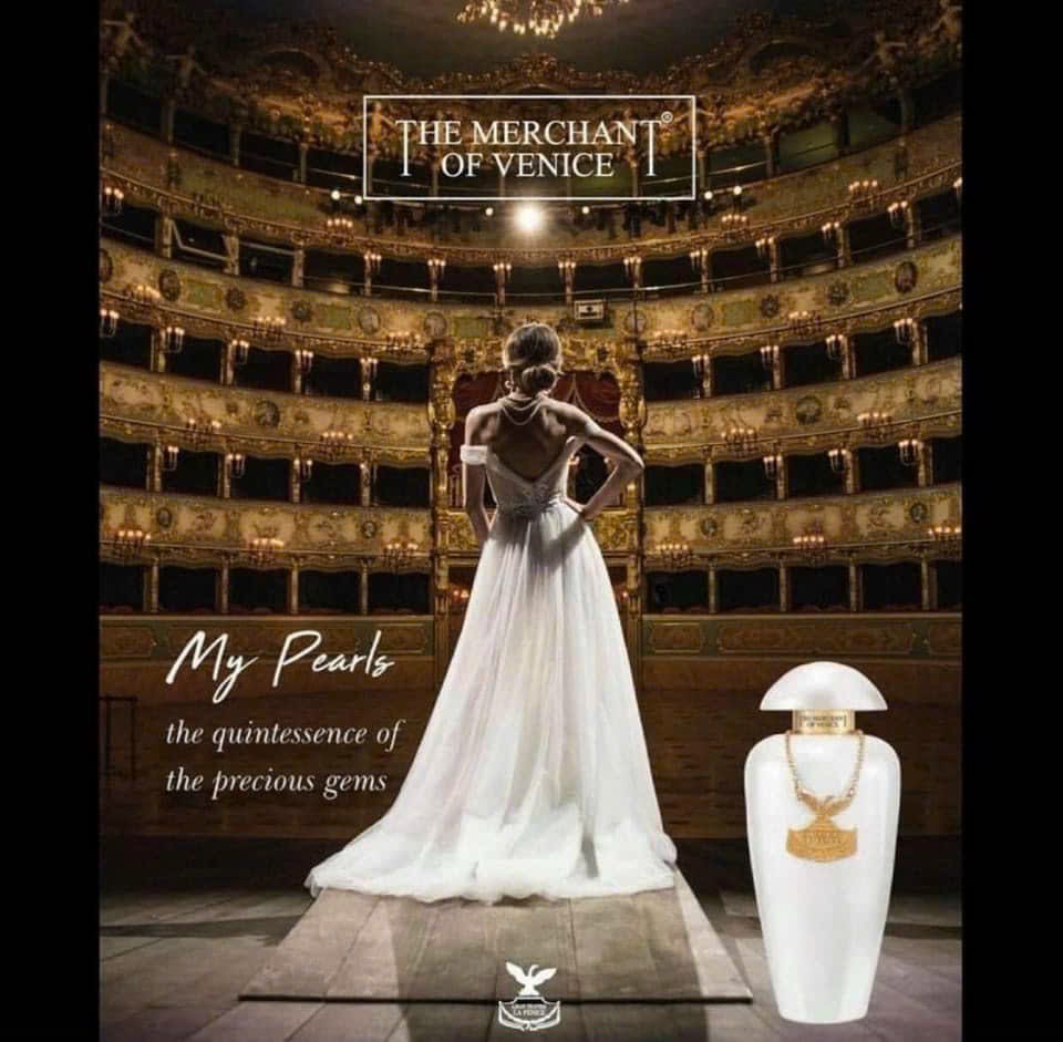 - 𝐌𝐲 𝐏𝐞𝐚𝐫𝐥𝐬 được lấy cảm hứng từ sự quý giá của ngọc trai, một biểu tượng của sự nữ tính. Chai nước hoa có màu trắng đục, thanh lịch, chứa hương thơm hoa cỏ, bột và xạ hương, đặc trưng bởi các nốt hương tinh tế và mềm mại của hoa trắng để bày tỏ lòng kính trọng đối với Nhà hát Venice và la “Divina”.