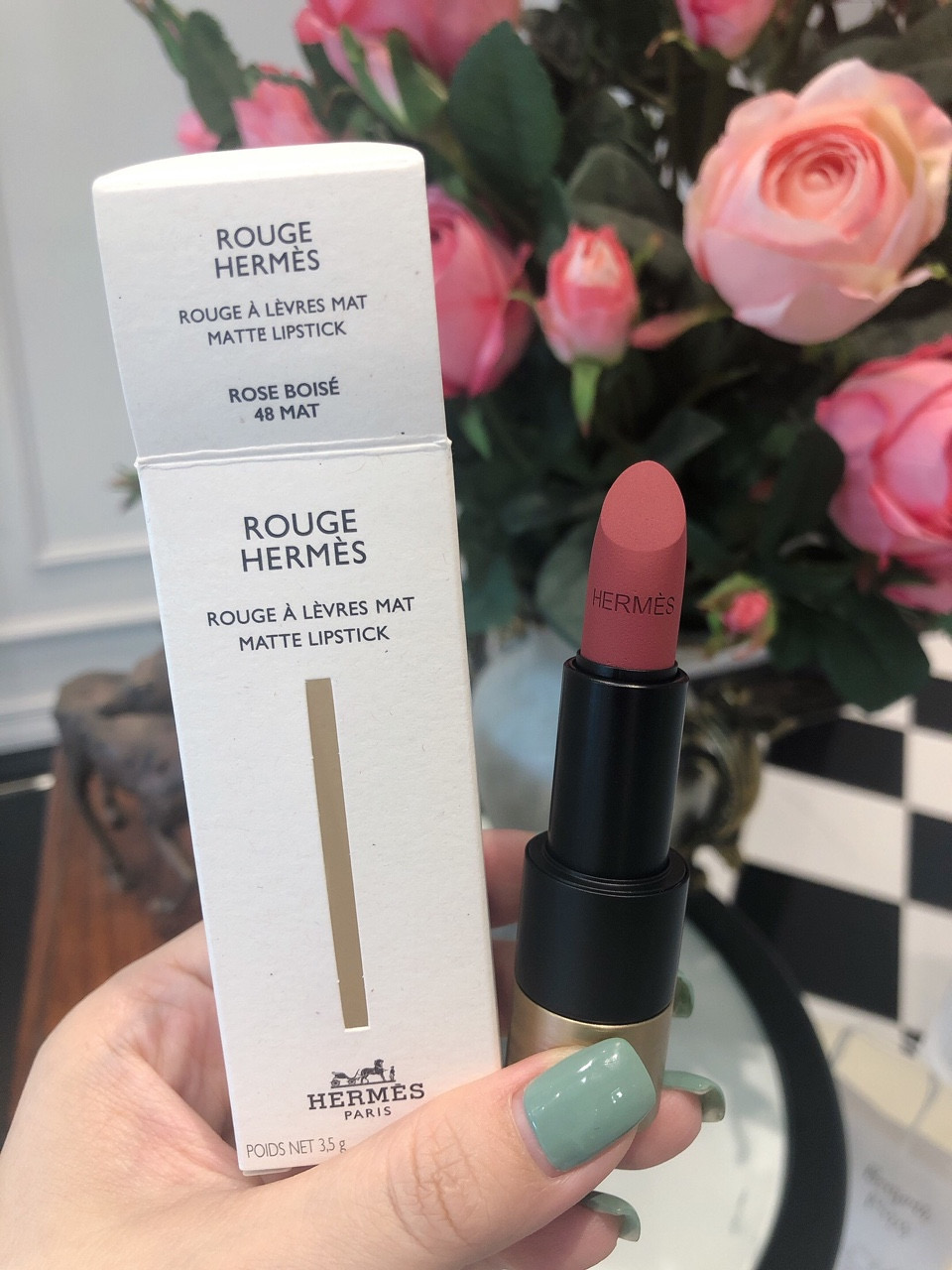 Màu 48 Rose Boise- màu hồng đất siêu đẹp và dễ đánh có thể dùng ở mọi trường hợp đi chơi, đi tiệc đều được nhé các Bạn, nằm trong bộ sưu tập son môi Rouge Hermès.